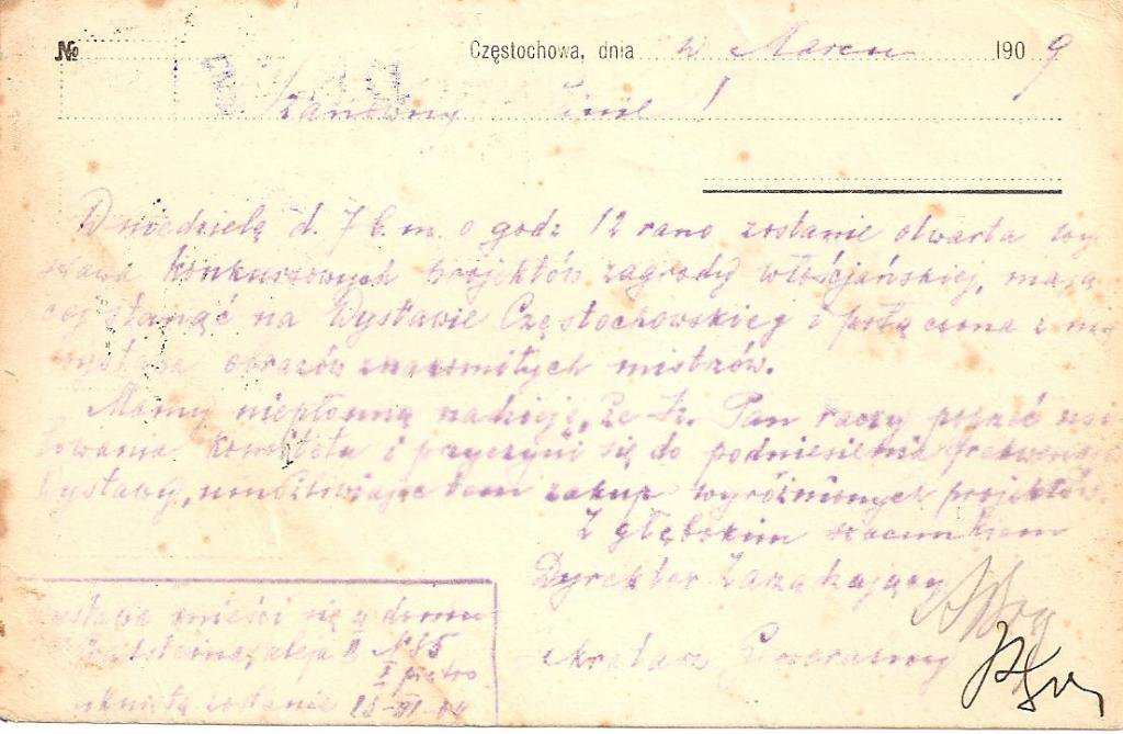 Wystawa przemysłu i rolnictwa w Częstochowie, 1909, medal sygnowany J. Wasilewski, na uszku punca J.W, srebro, 25 mm, 7.66 g, Strzałkowski 109 R